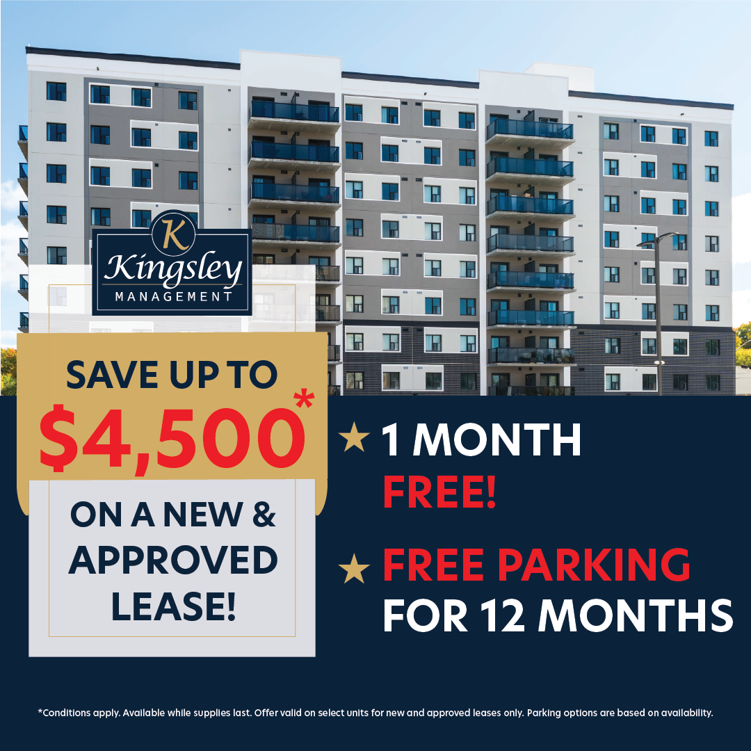 *Conditions apply. Available while supplies last. Offer valid on select units for new and approved leases only. Parking options are based on availability.