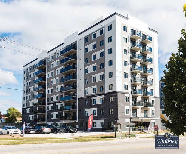 Bloomingdale Mews 2 is a new apartment development by Kingsley Management, located at 595 Strasburg Road, Kitchener. The building features 107 modern rental units in a highly accessible and convenient neighbourhood.